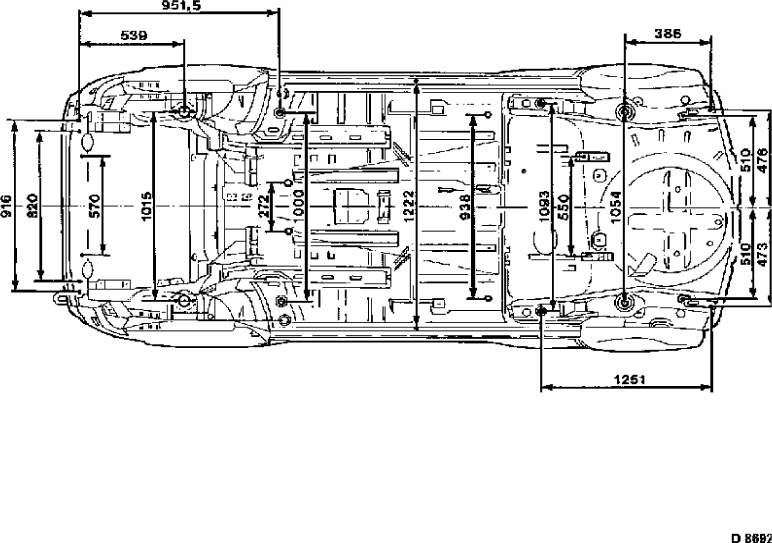 La figure D 8778 montre la cote de contrôle au plancher de la voiture, latéralement.